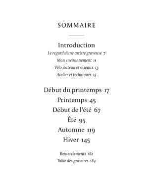 Ici un couple de merles en train de construire son nid, là une loutre en pleine partie de pêche, ou encore un hérisson familier, un renard curieux… Ouvrir ce livre, c’est plonger dans l’univers d’une artiste unique, où chaque gravure recèle son lot de poésie et de beauté.
