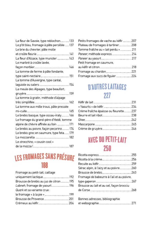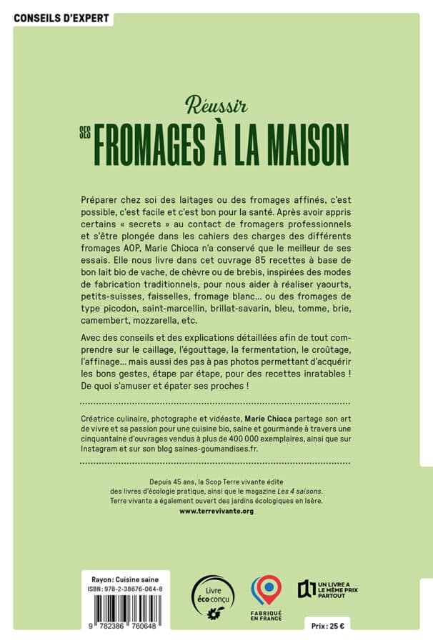 Réalisez vos yaourts, petits-suisses, faisselles, fromage blanc… ou des fromages de type picodon, saint-marcellin, brillat-savarin, bleu, tomme, brie, camembert, mozzarella et tant d’autres grâce aux conseils et explications détaillées dans ce livre. Pour tout comprendre sur le caillage, l’égouttage, la fermentation, le croûtage, l’affinage… Des pas à pas photos rendent ces recettes inratables et permettent d’acquérir les bons gestes, étape par étape.