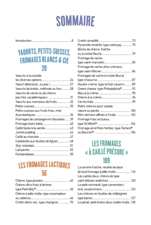 85 recettes (vache, chèvre, brebis) respectueusement inspirées des modes de fabrication traditionnels sont là pour le prouver : bonnes pour la santé (car plus riche en ferments probiotiques), délicieuses, bonnes pour la planète (car sans suremballage), très amusantes, et plutôt sympa côté porte-monnaie.