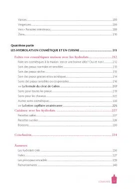 Retrouvez dans cet ouvrage très complet, une introduction détaillée pour bien comprendre « Qu’est-ce qu’un hydrolat ? », le descriptif de 27 hydrolats ainsi que de nombreux conseils qui vous permettront de bien les choisir et bien les utiliser. Découvrez également de nombreux témoignages quant à leur efficacité et leur utilisation en cosmétique maison et en cuisine.