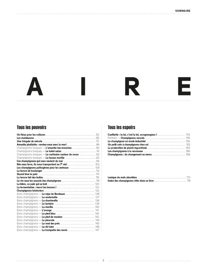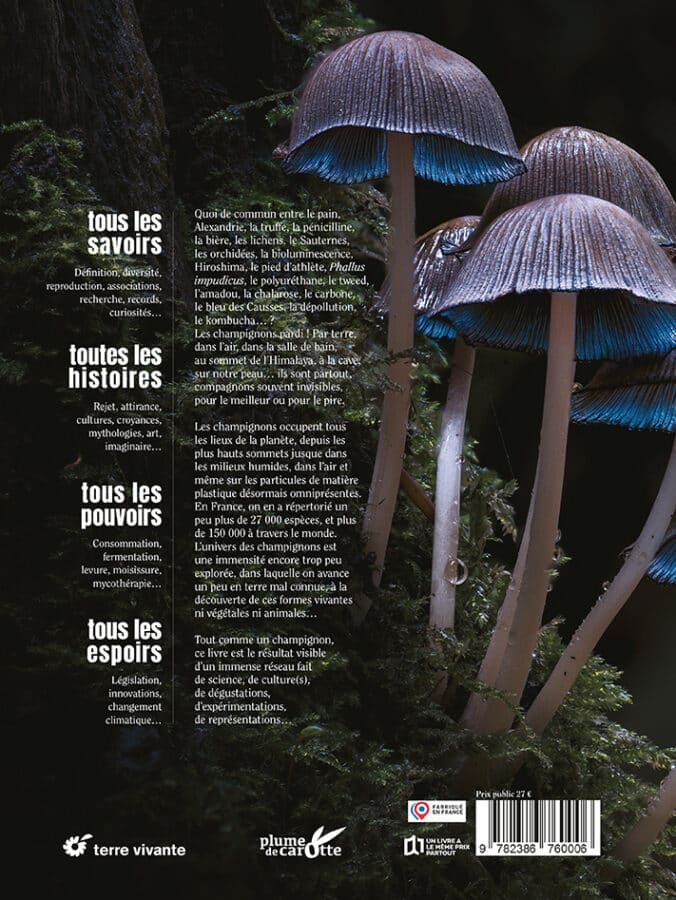 Les champignons, c’est le point commun entre le pain, Alexandrie, la truffe, la pénicilline, la bière, les lichens, le Sauternes, les orchidées, la bioluminescence, Hiroshima, le pied d’athlète, Phallus impudicus, le polyuréthane, le tweed, l’amadou, la chalarose, le carbone, le bleu des Causses, la dépollution, le kombucha… Par terre, dans l’air, dans la salle de bain, au sommet de l’Himalaya, à la cave, sur notre peau… ils sont partout, compagnons souvent invisibles, pour le meilleur ou pour le pire.