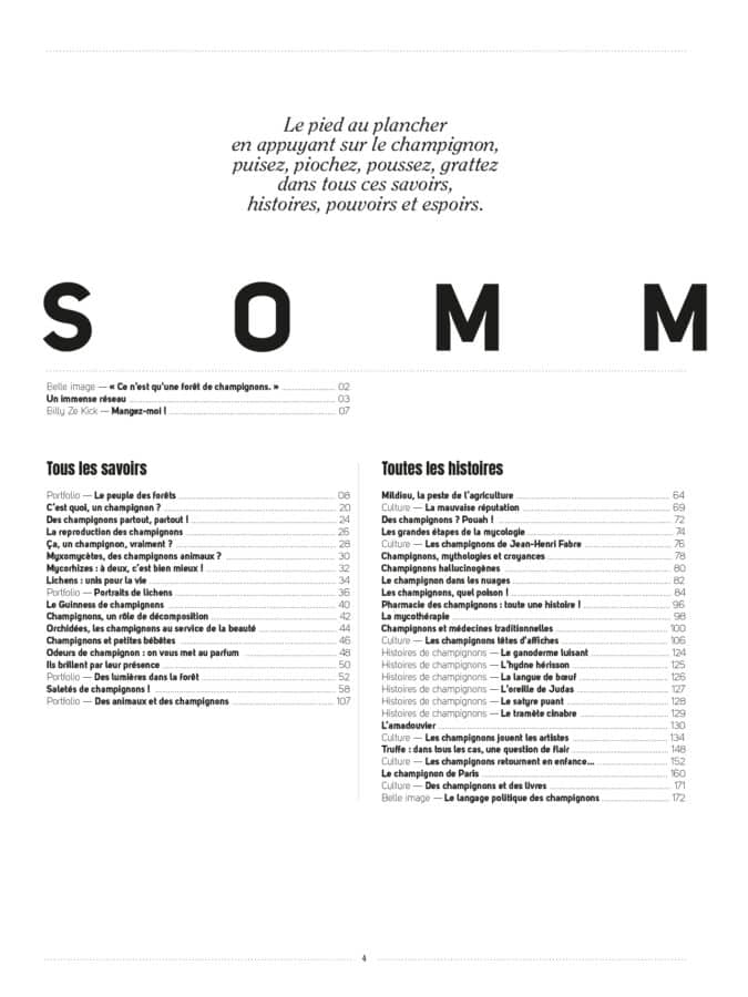Dans ce beau livre, Serge Schall nous entraîne à la découverte des champignons sous toutes leurs formes et leurs usages : biologie, histoire, culture, science, économie, politique, médecine, arts…