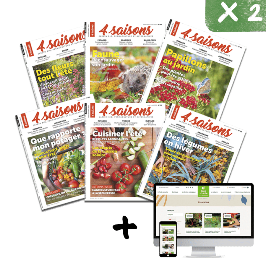 Votre aide est cruciale. En choisissant une de nos formules soutien (de +5 € à +15 €), vous assurez la pérennité de notre magazine Les 4 Saisons et aidez Terre vivante à passer un cap difficile et nous permettre ainsi de continuer à inspirer davantage de personnes à cultiver un monde plus vert.