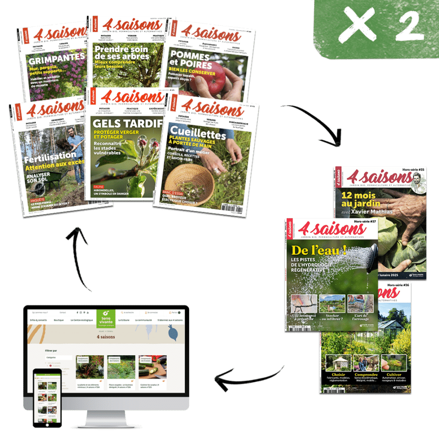 Votre aide est cruciale. En choisissant une de nos formules soutien (de +5 € à +15 €), vous assurez la pérennité de notre magazine Les 4 Saisons et aidez Terre vivante à passer un cap difficile et nous permettre ainsi de continuer à inspirer davantage de personnes à cultiver un monde plus vert.