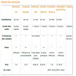 Pour les radis, l’écart entre les films les plus efficaces et le témoin n’a été que de 8 jours, alors qu’on parle souvent d’un gain possible de 10 à 15 jours. Peut-être aurait-on pu obtenir des écarts plus importants en améliorant l’étanchéité périphérique et la tenue au vent, par exemple en enterrant les bords ou en utilisant des liteaux. La levée a été la plus rapide avec les deux films Climatex de la planche n° 1. L’écart de 6 jours avec les deux films posés sur arceaux peut s’expliquer par la présence du volume d’air à réchauffer. À la récolte, les faibles écarts (entre les planches 1 et 2) se sont estompés tandis que les radis sont restés plus petits pour le témoin et les deux films sur arceaux. Pour les salades, peu de différences visibles, hormis un léger retard avec le voile Hivertex, le plus lourd et le plus épais qui semble avoir eu un léger effet dépressif sur leur croissance (poids, manque de lumière).