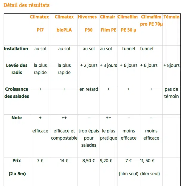 Certains voiles comme le Hivernes P30, trop épais ont ralenti la croissance des salades par rapport à la planche témoin.