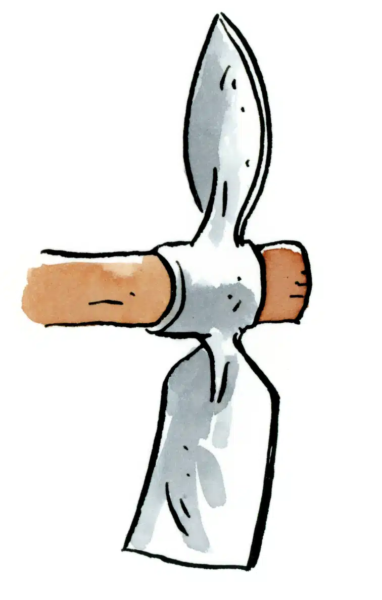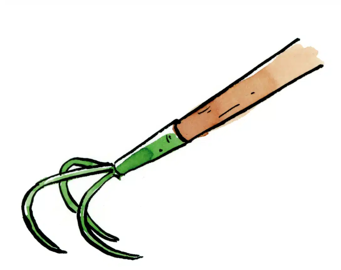 La grelinette, biobêche ou biofourche : outil quasi indispensable, car particulièrement ergonomique pour un travail du sol plus ou moins profond (jusqu’à 20 cm) sans retournement et avec le minimum de fatigue. Si la célèbre grelinette fait figure d’ancêtre emblématique, il en existe plusieurs variantes plus ou moins réussies. Un conseil : essayer avant d’acheter ! Certains modèles sont à dents démontables, ce qui permet de les remplacer.