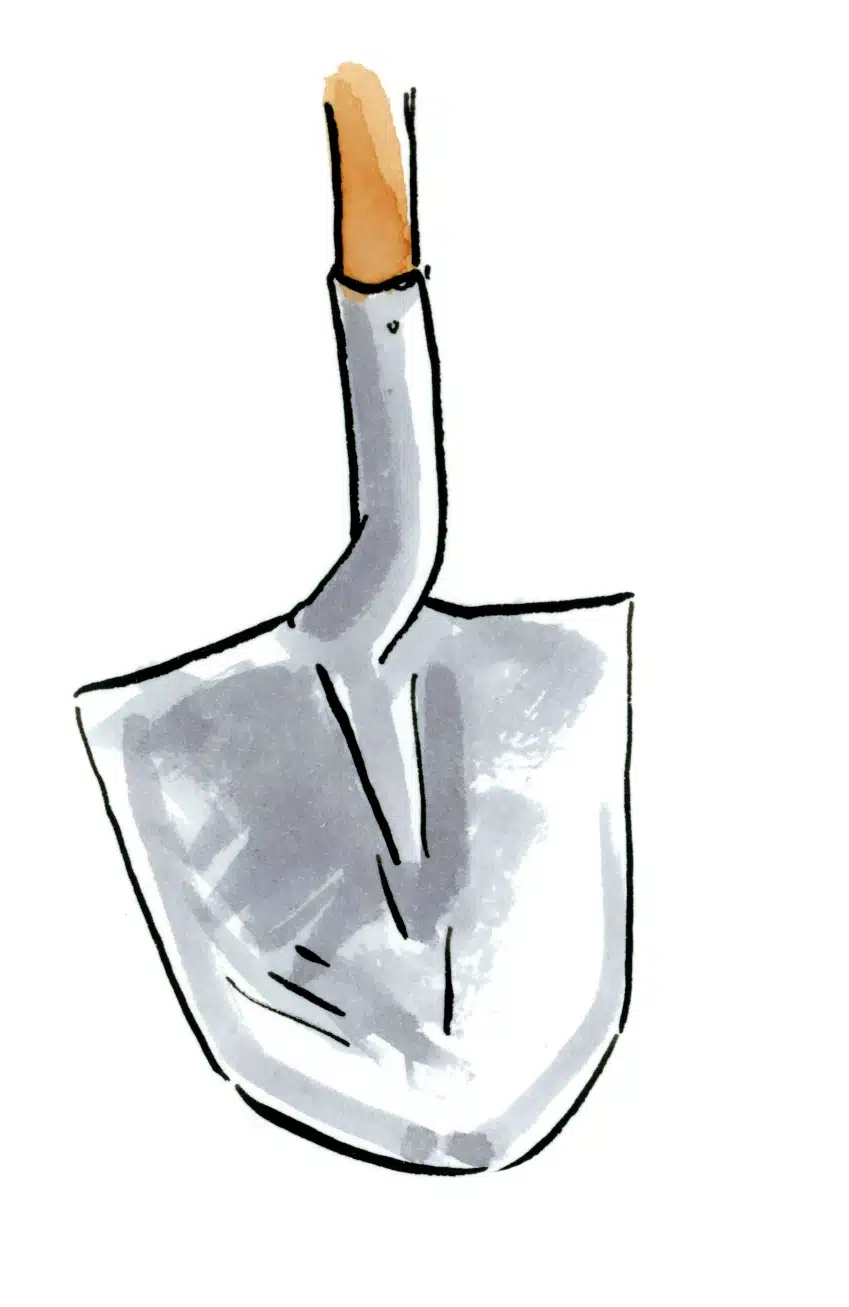 La pelle ronde : très pratique notamment pour prélever du compost dans le tas et l’épandre dans le jardin, ou bien pour creuser des trous dans la terre.