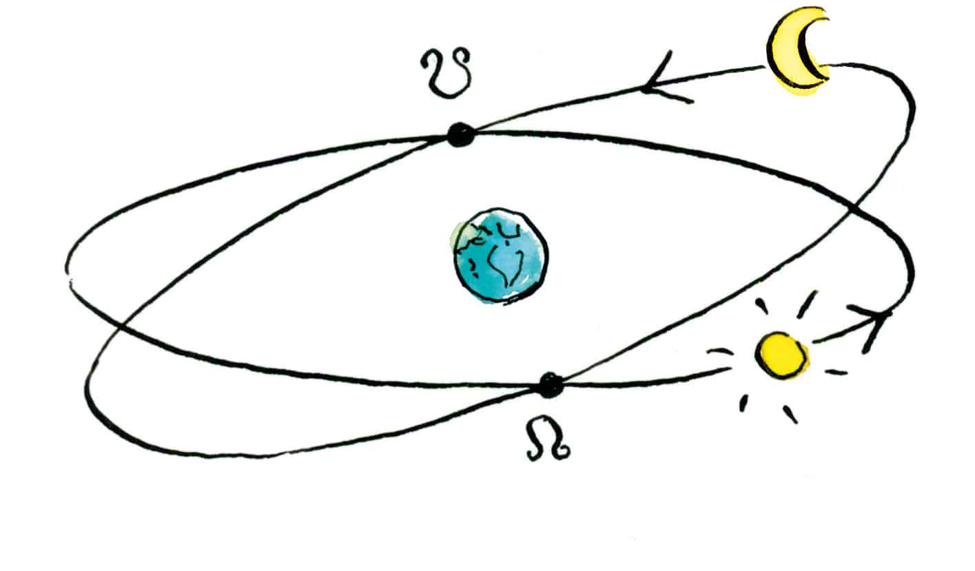 Observés de la terre, la lune et le soleil semblent tourner autour de notre planète. Le soleil est maître du rythme des jours et des nuits et du rythme des saisons. La lune, elle, possède deux cycles :