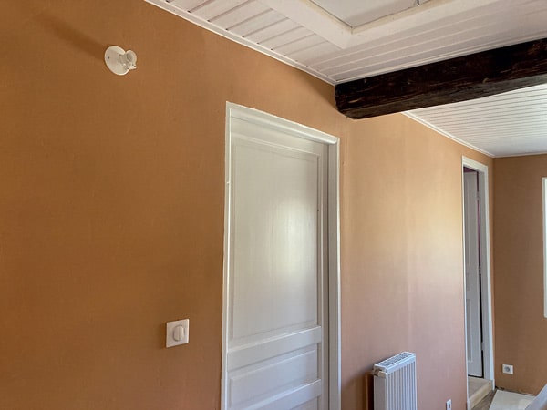 Émissions de COV : cet étiquetage indique le niveau de COV (A+, A, B, C) 28 jours après l’application de la peinture, et seulement pour une dizaine d’entre eux, alors qu’il en existe plus d’une centaine ! Visez une teneur de 6 g/l maximum. Dans les faits, la plupart des peintures du marché ont la mention A+. Les peintures naturelles ont l’avantage de ne dégager aucun produit après leur séchage complet. Il faut environ 8 à 10 jours pour qu’une peinture naturelle soit sèche à cœur ; au‑delà, que ce soit une peinture avec solvant ou bien à l’eau, aucune émanation ne se retrouvera dans l’air intérieur.