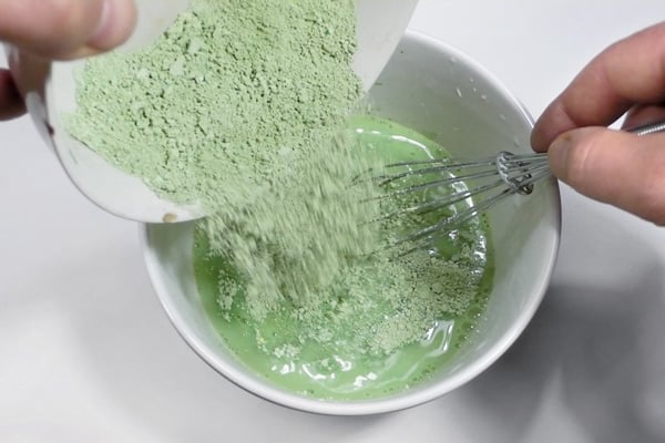 – Mélangez toutes les poudres entre elles, puis délayez-les vigoureusement dans l’eau, au fouet ou au mélangeur.