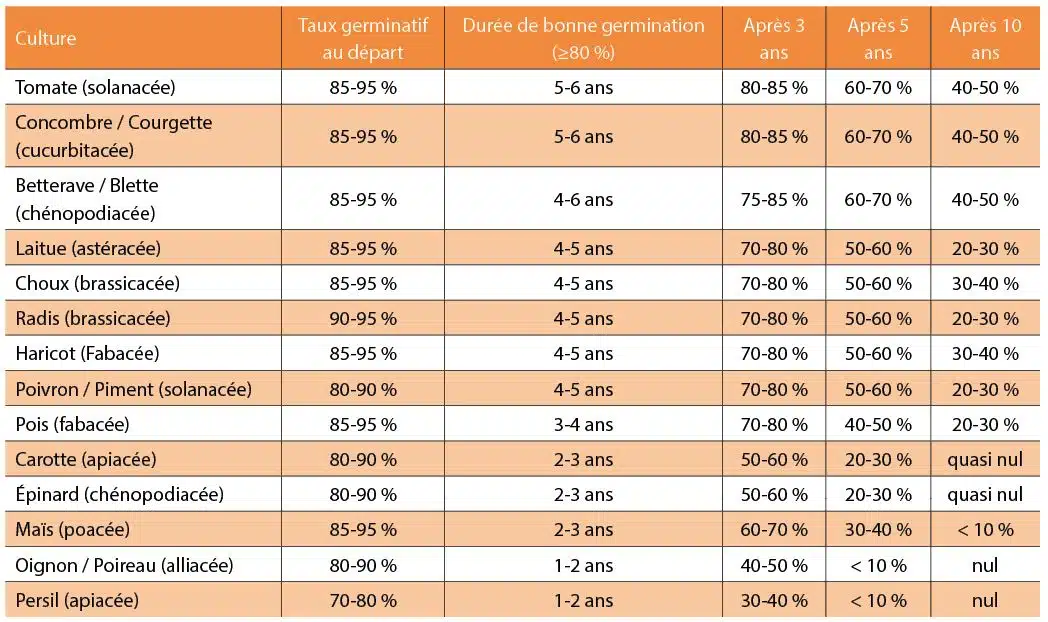 Vous trouverez ci-dessous un tableau qui synthétise cette baisse de germination.