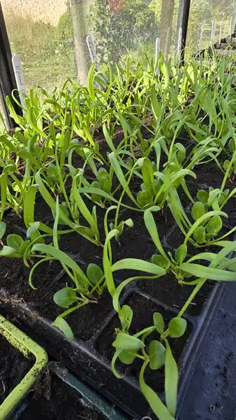 L’inconvénient est de devoir semer beaucoup pour remplir une plaque entière. A défaut, vous pouvez scier ou découper une plaque en plusieurs morceaux. Je le fais parfois pour semer par exemple une vingtaine de laitues ou des épinards. Plutôt que semer en barquette et ensuite repiquer en godet, je sème directement en petites alvéoles. Je procède de même pour les betteraves et blettes, en utilisant de plus grandes alvéoles de 5 cm de diamètre : je découpe un tiers de plaque pour y semer une vingtaine de betteraves ou blettes.