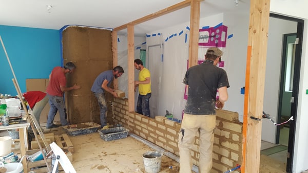 - Durée : 2,5 j (briques) + 3 j (montage mur)