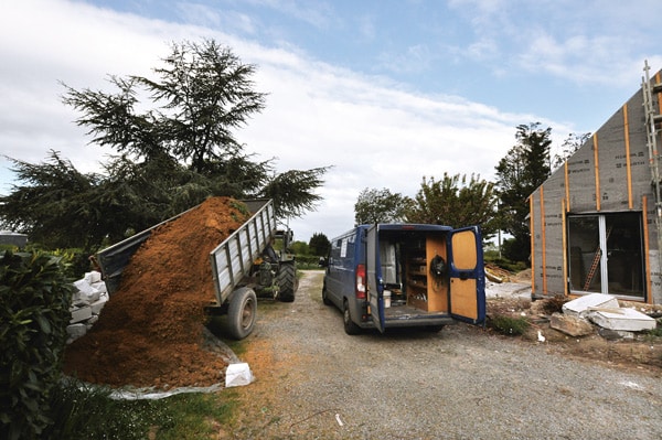 L’architecte consultée pour nous prodiguer ses conseils dans l’organisation du chantier nous a mis en contact avec un « passionné de la terre » qui vit dans la commune voisine. Agriculteur, André nous livre pour seulement 20 € (frais de transport de son tracteur) 4 m3 de terre récupérée sur le chantier de terrassement d’une zone d’activité à 3 km de chez nous.