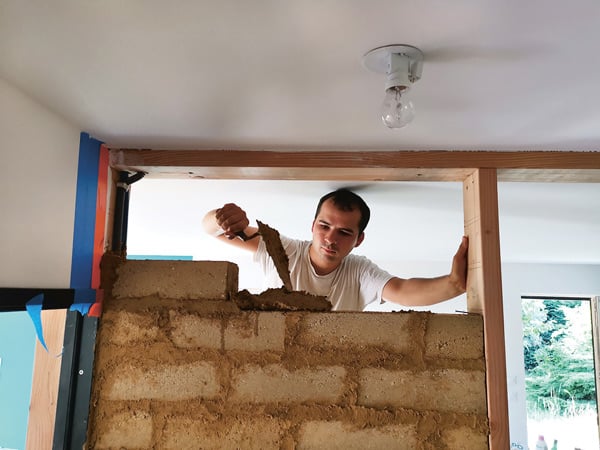 Quelle satisfaction de démouler ses propres briques constituées de terre naturelle !