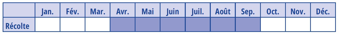 Délai avant la première récolte : les feuilles peuvent être prélevées dès les premiers mois de culture, mais la racine doit forcir pendant plusieurs mois ou plusieurs années avant d’être consommée.